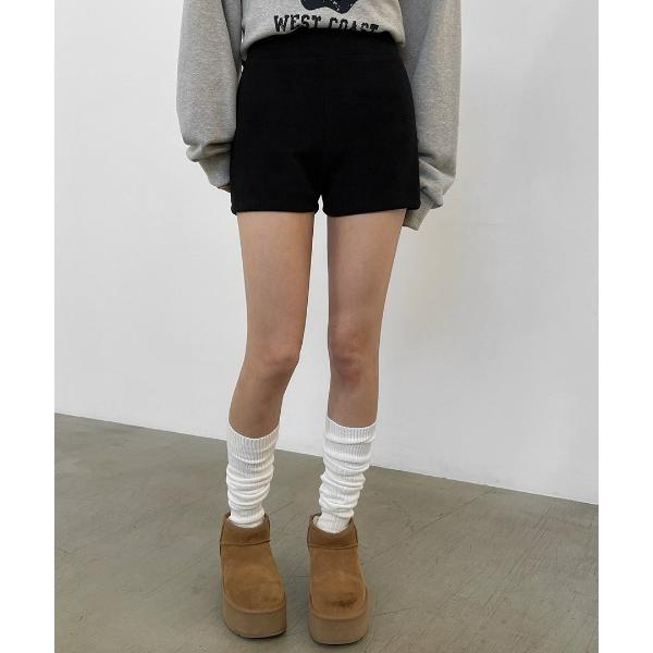 パンツ ウエストゴムコーデュロイニットショートパンツ レディース
