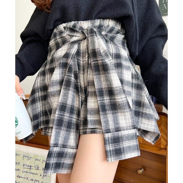 パンツ ラップスカート風チェック柄ショートパンツ レディース
