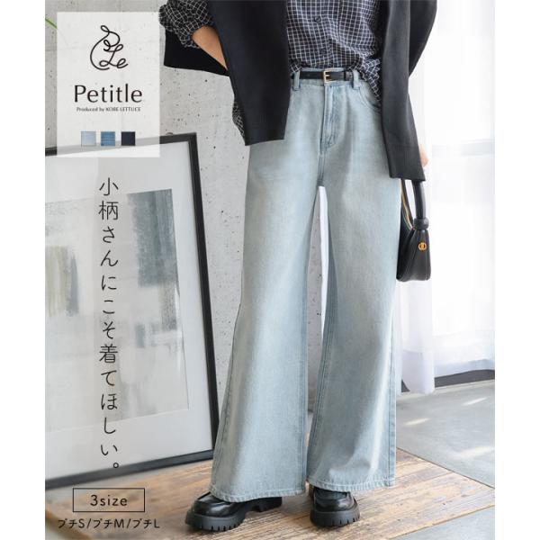 日替わりセール ボトム Petitle プチレ ウエスト調整ゴム付きワイドデニムパンツ レディース 20代 30代 40代 低身長 M4239送料無料