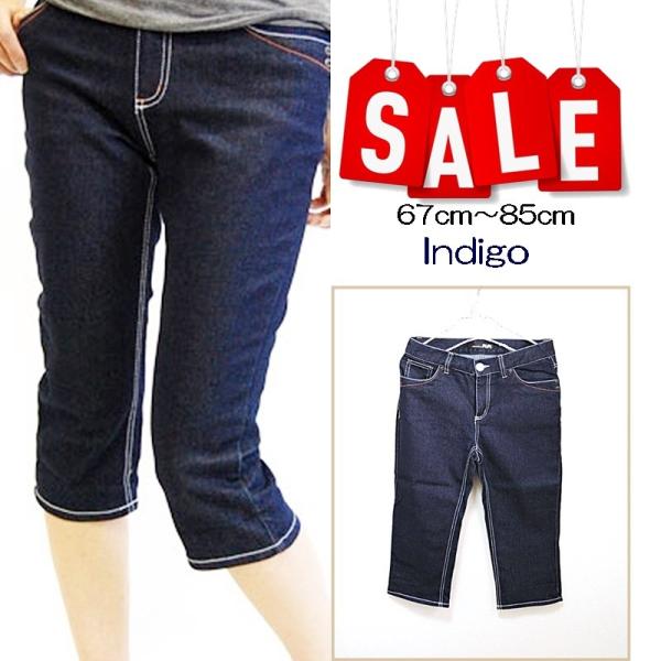 クロップドパンツ デニム レディース サブリナ ひざ丈 ラインストーン 送料無料 お買い得