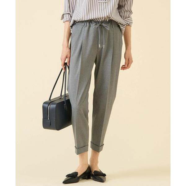 パンツ 人気NO.1「褒められパンツ/高ストレッチ/ウエストゴム」タックテーパードパンツ レディース