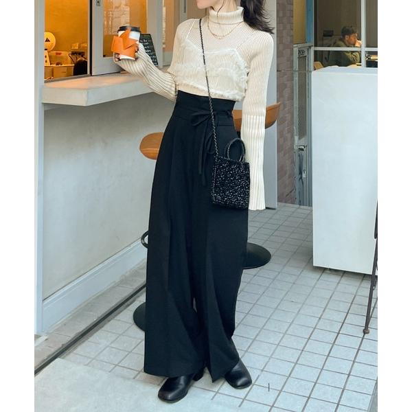ワイドパンツ レディース パンツ ボトムス ゆったり タック入り タック ワイド 大きいサイズ ポケット付き 秋 冬 両面起毛