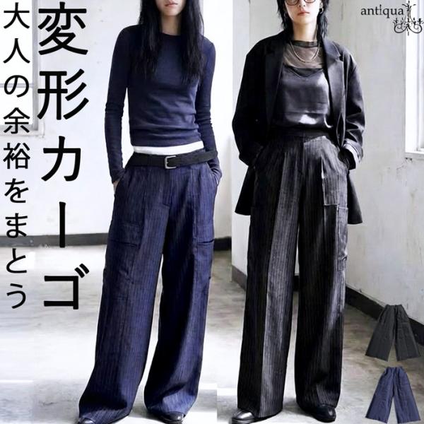 変形 カーゴパンツ レディース ワイド ストライプ 送料無料・500ptメール便可