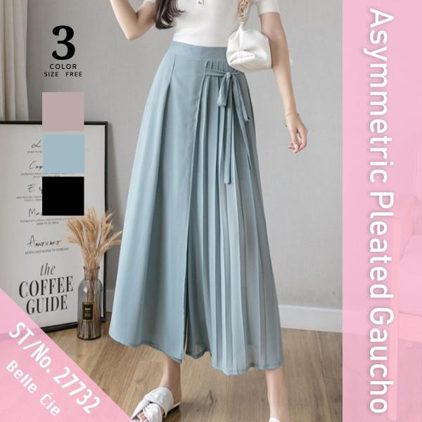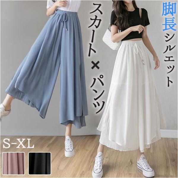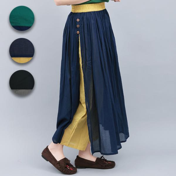 メヒコモチーフプリントパンツスカート / ロングパンツ レディース 春 夏 薄手 スカート見え レイヤード風 サイドボタン ウエストゴム 楽ちん ボトムス