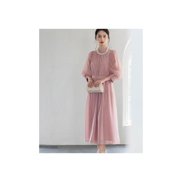 ドレスプラス DRESS+ ワンピース オーガンジー 結婚式 フォーマル パーティードレス (ピンク)