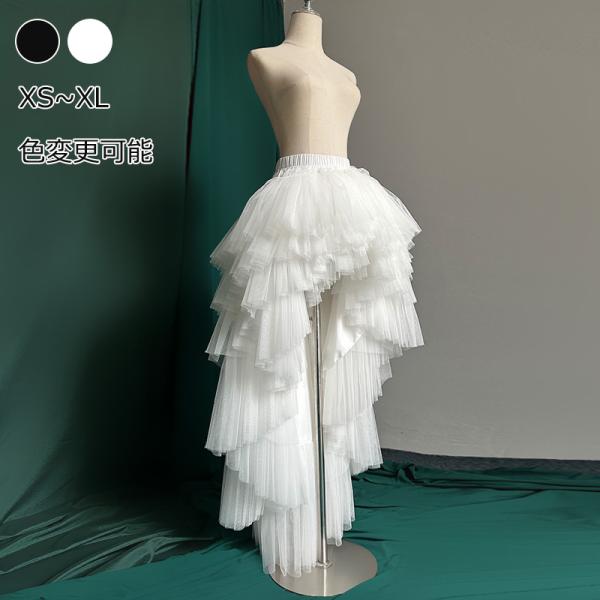 ドレスアレンジ 前短後長スカート オーバースカート チュールスカート ダンス衣装 舞台 フィッシュテール 花嫁 結婚式 二次会 オフホワイト アシンメトリー