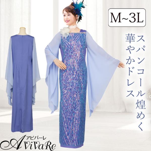 即納★ 細見せ流線スパンコール刺繍ドレス [OP500-3813] ロングドレス カラードレス カラオケ衣装 ドレス ロング レディース 華やか 発表会 衣装 ステージ
