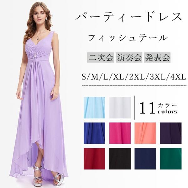 パーティードレス ロングドレス 11colors フィッシュテール Vネック ノースリープ 肩見せ 妊婦さんもOK ドレス 二次会 演奏会 発表会 お呼ばれ