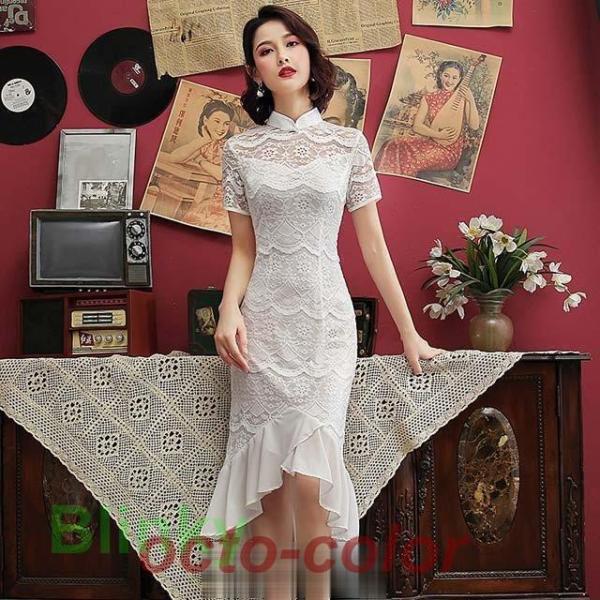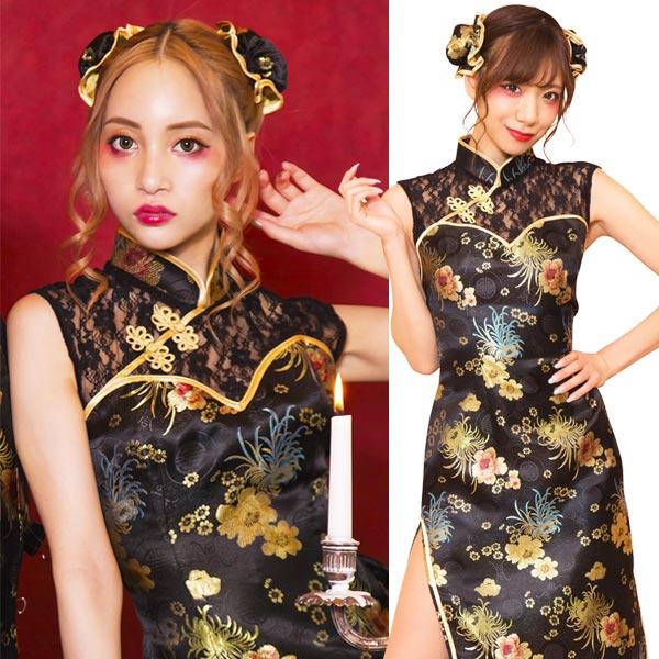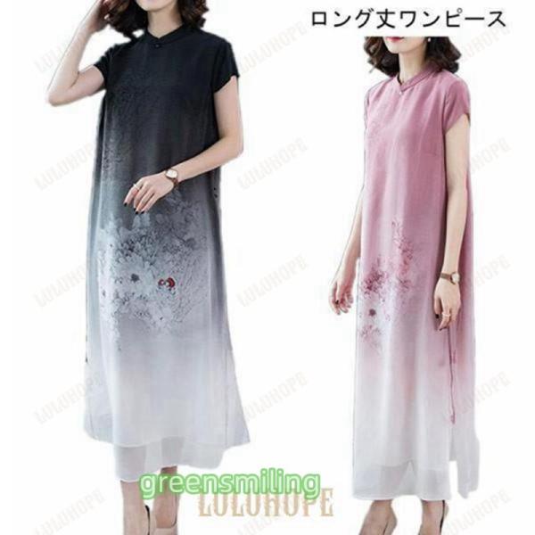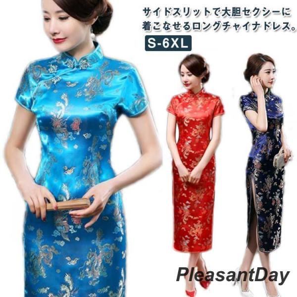 チャイナドレス ロング丈 チャイナドレス ワンピース チャイナ風ワンピース チャイナ服 ベルベット 刺繍 ドレスワンピース 花柄 5分袖 衣装