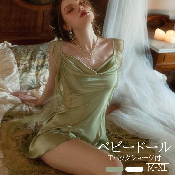 甘いツヤ感ピンクベビードール セクシー ランジェリー Tバック セット シースルー レース 女性用 下着 キャミソール テディ ネグリジェ ナイトウェア