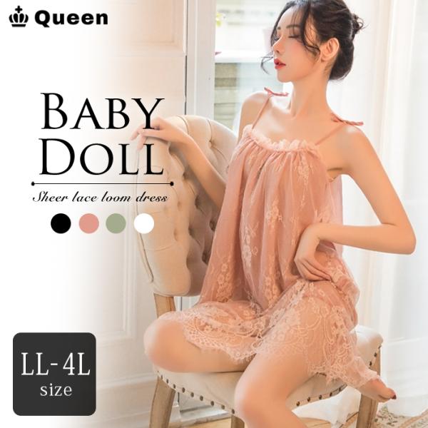 ベビードール セクシーランジェリー 大きいサイズ LL 3L 4L ネグリジェ 下着 レース シースルー ワンピース Queen