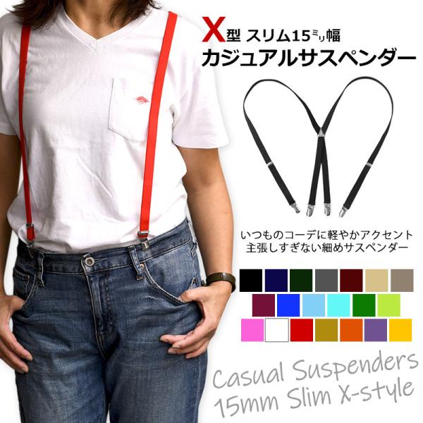サスペンダー メンズ レディース クリップ ゴム ベルト パンツ スカート キッズ 子供 Y型 15mm 1.5cm幅 カジュアル フォーマル 吊りバンド 細め 細い 爆買