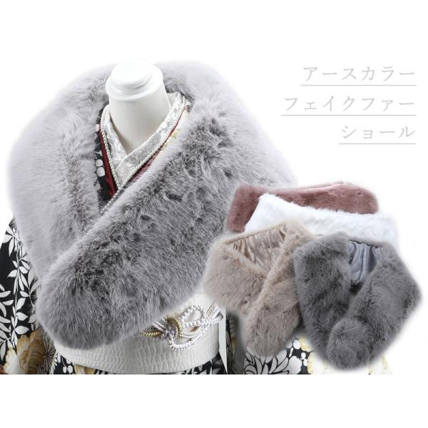成人式 ショール 振袖 ファー「白 グレーミックス グレー 黒 全4色」フェイクファー ファーショール エコファー 和装 結婚式(メール便不可)<H>ss2512wkm20