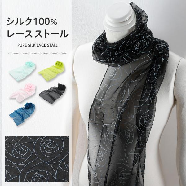 シルク100% 夏用 お洒落 レースストール バラ柄 ふわっと軽い サマーショール 日焼け対策 冷房対策に 全5柄 sy-133