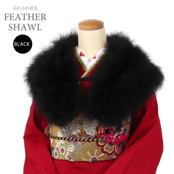 フェザーショール 黒 成人式 振袖 卒業式 袴 パーティー お正月 ショール 羽毛 振袖 着物 和装小物 ファーショール 765083
