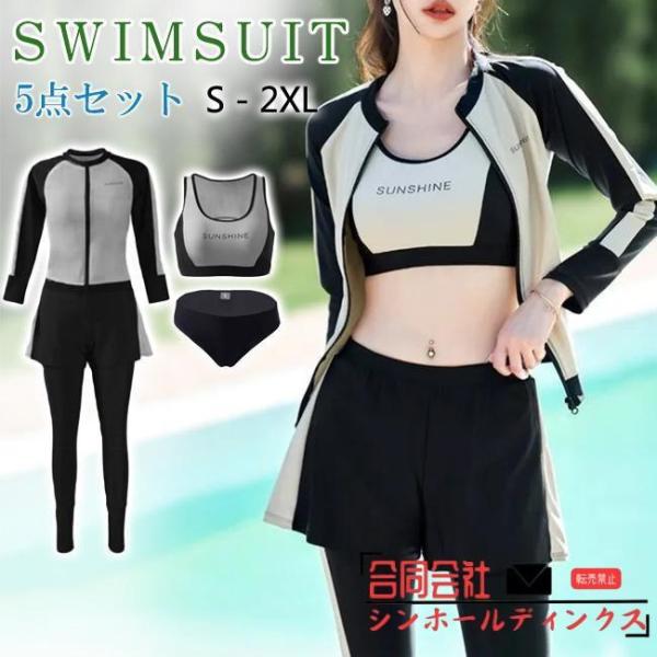 水着レディース体型カバー長袖ラッシュガードセット5点セットフィットネス水着タンキニショートパンツレギンスママ20代30代40代