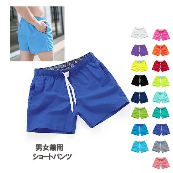 撥水加工速乾ショートパンツ 水着レディース メンズ みずぎ 女性用 男性用 海パン 短パン プール ビーチ カップル水着 水泳 無地 プレゼント 送料無料