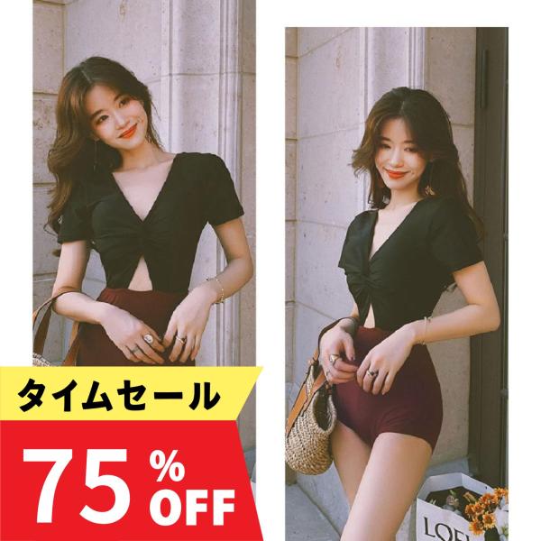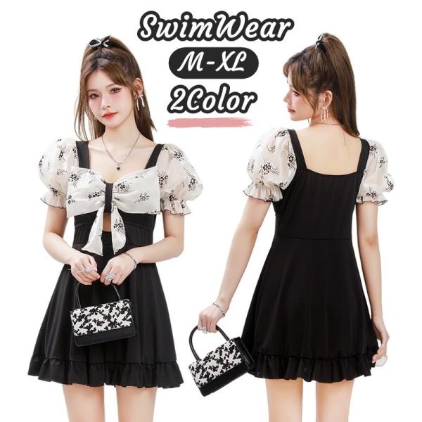 水着 レディース ワンピース オールインワン おしゃれ かわいい 半袖 パフスリーブ 20代 30代 40代