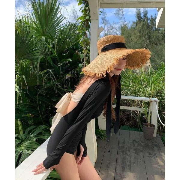 水着 バックオープンリボン長袖ワンピース/水着 レディース