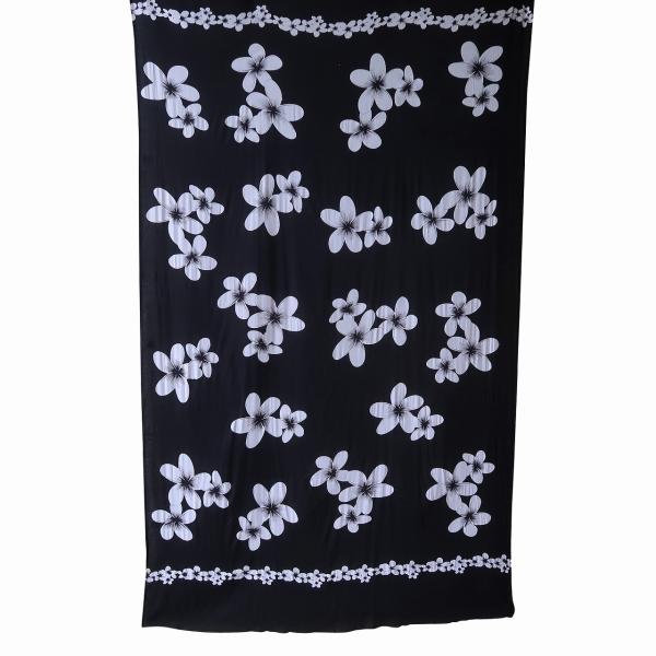 パレオ マルチファブリック サロン プルメリア フラワー ブラック&ホワイト 110X170 ネチ ハワイアン【メール便OK】190016