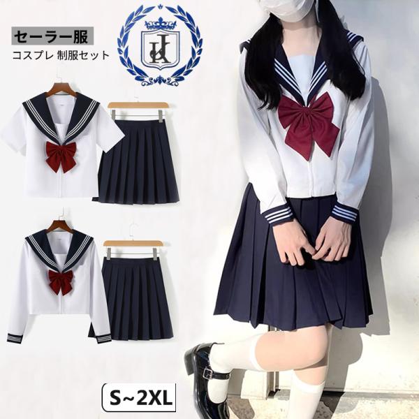 セーラー服 コスプレ 制服 女子高生 学生服 S〜2XLサイズ 上下セット jk制服 コスプレ 高校生 可愛い コスチュームセット ハロウィン 衣装 仮装 イベント 学園祭