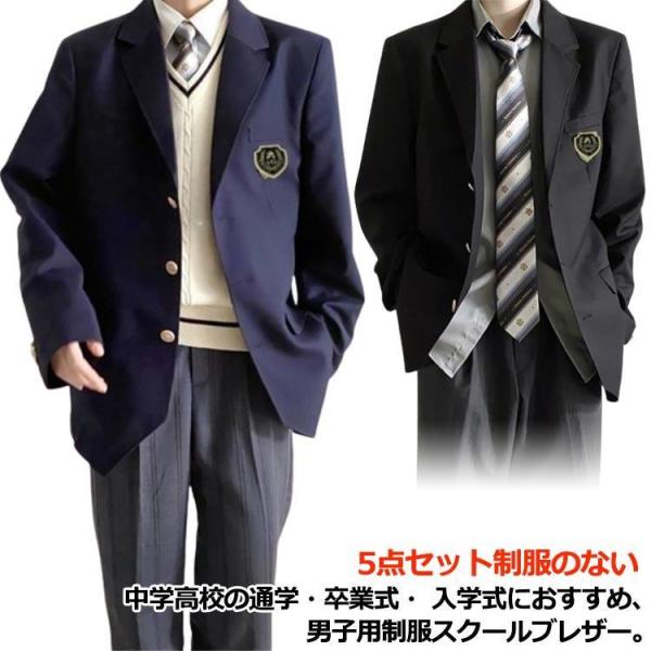 学生服 ロングパンツ 紺 無地 スクールジャケット ブレザー 男子高校制服 5点セット スーツ コート フォーマル 学生服 高校生 男子中学生 ネク