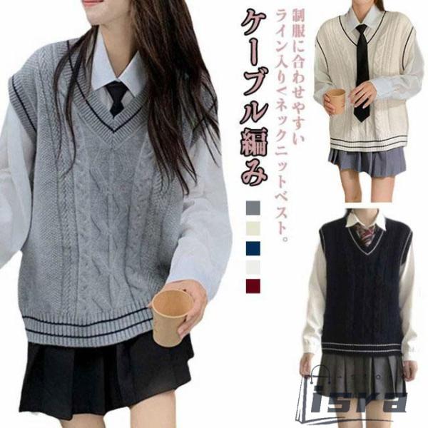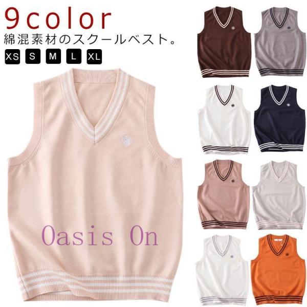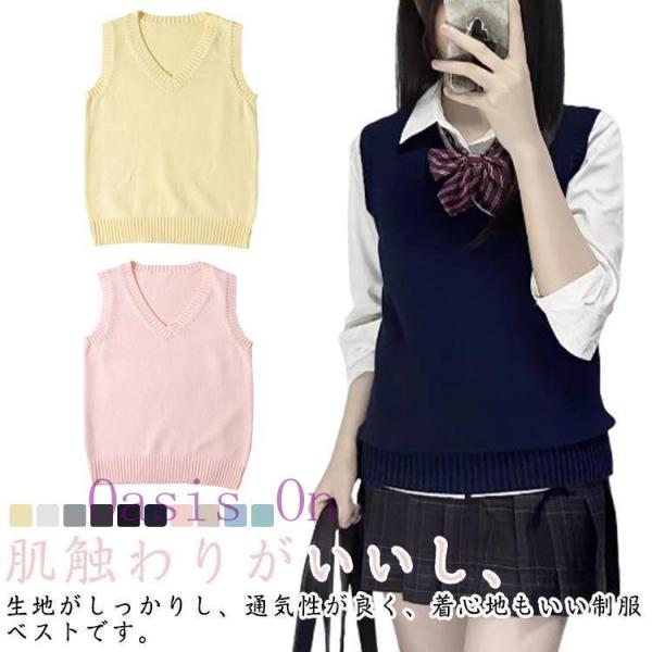 スクールベスト スクール ニット ベスト セーター ニットベスト Vネック チョッキ 女子 女子高校生 学生 制服 春夏 秋冬 通年 通学 無地 可愛
