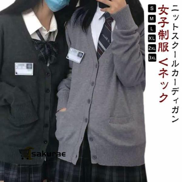 スクールカーディガン Vネック セーター 女子 ニットカーディガン 制服 グレー 羽織り 中学生 綿 コットン キッズ 学生 学生服 カーディガン ニ
