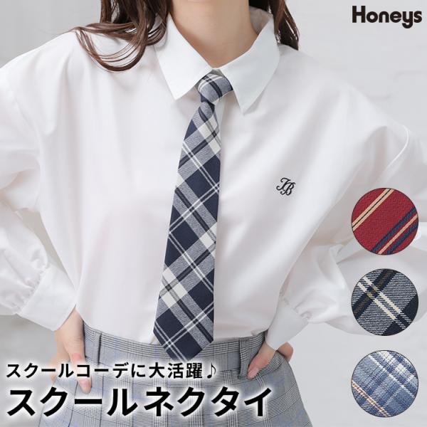ネクタイ チェック柄 ストライプ柄 制服ネクタイ 通学 スクールコーデ アジャスター ワンタッチ ガーリー レディース Honeys ハニーズ スクールネクタイ