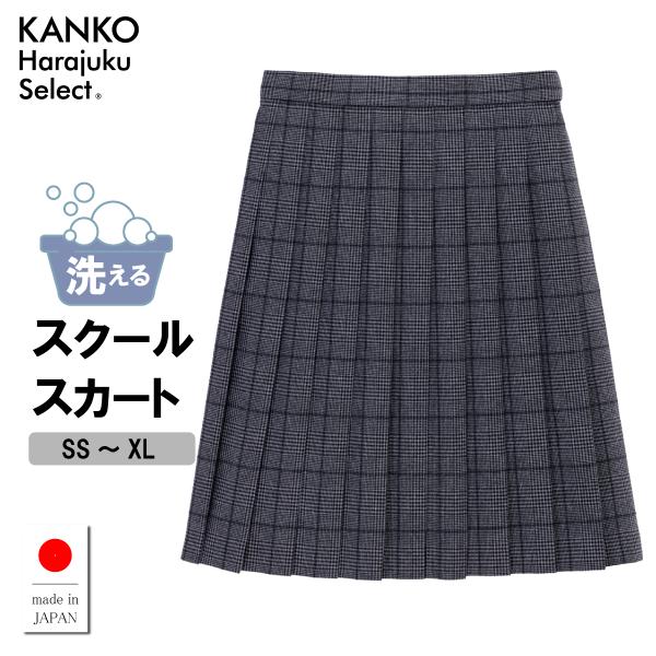 制服 スカート スクールスカート プリーツスカート チェック 大きいサイズ 日本製 ネイビー グレー ブラウン 紺 茶 なんちゃって制服 カンコー 送料無料 KHS212