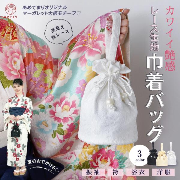 和装バッグ カジュアル 通年用 レース 巾着 バッグ 着物 バック 夏着物 浴衣 卒業式 袴 十三参り 巾着袋 レディース