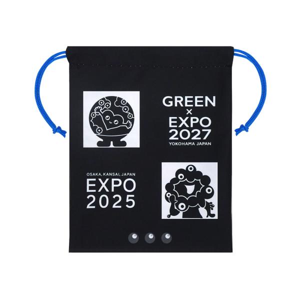 トゥンクトゥンク&ミャクミャク 巾着 黒 2027年国際園芸博覧会公式ライセンス商品 2025大阪・関西万博公式ライセンス商品
