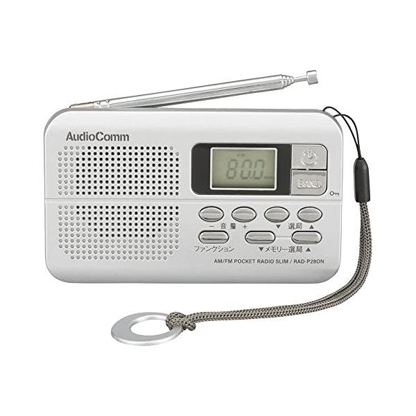オーム電機AudioComm ラジオ ポータブル 横型スリムラジオ AM/FMステレオ 自動選局 スタンド機能 RAD-P280N 03-728