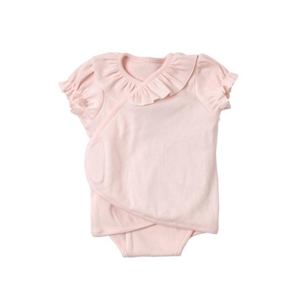10mois ディモワ PATTO SATTO OMEKASHI 半袖襟フリル ピンク 60-70cm 肌着 インナー テープ ベビー 赤ちゃん ロンパース 出産準備 前開き
