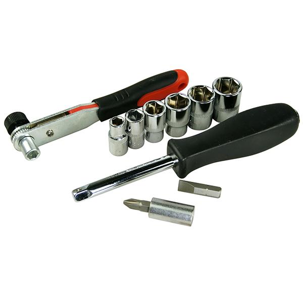 ツーリング携帯用 1/4"ラチェットレンチ ソケット11点セット H072