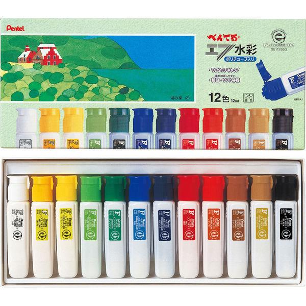 ぺんてる エフ水彩ポリチューブえのぐ 12色 WFC1-12 絵具 絵の具