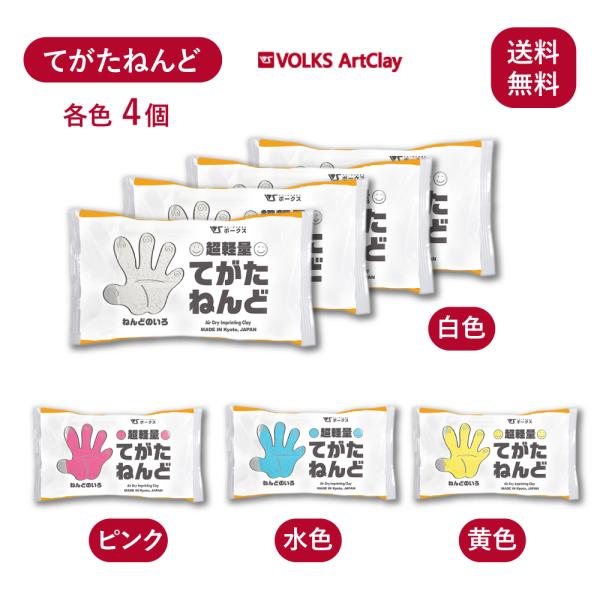 超軽量 てがたねんど 白 水色 ピンク 黄色 90g×4個 ボークス アートクレイ Volks Artclay 粘土 やわらかい 各色 造形 子供 孫 思い出 記念 成長 赤ちゃん 手形