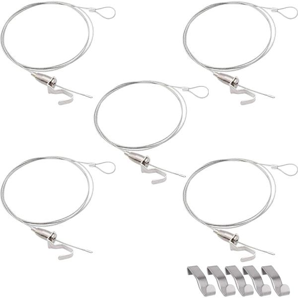 ピクチャーレール ワイヤー ワイヤーロープ 絵画 壁掛け 金具 5個(シルバー, 1.0m)