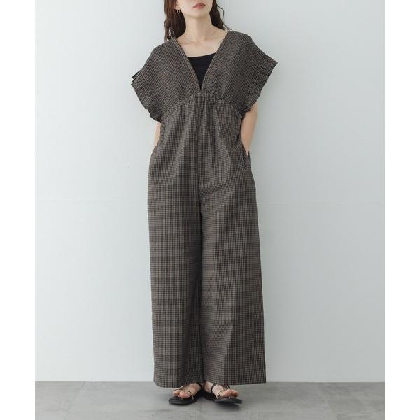オールインワン カットジョーゼットショルダーフリルオールインワン レディース