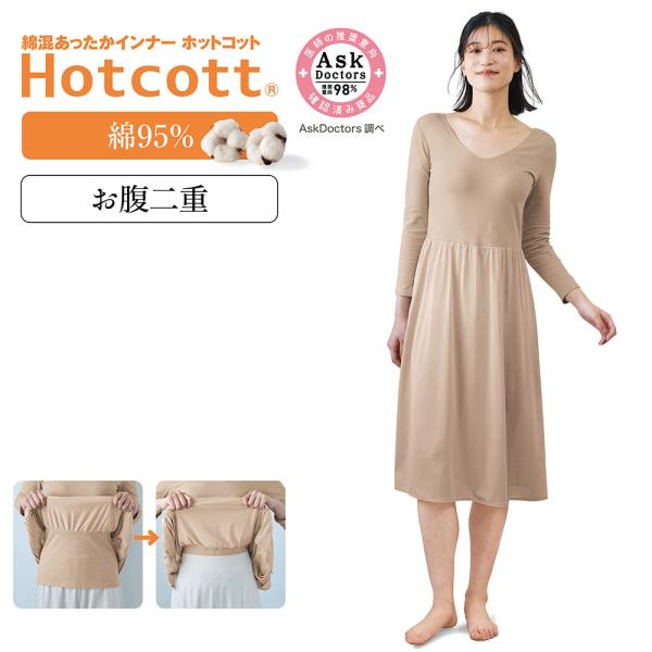 インナー レディース インナーウェア スリップ 肌着 九分袖 お腹をインできる 綿混 あったかインナー ホットコットHotcott シンプル おしゃれ S M L LL