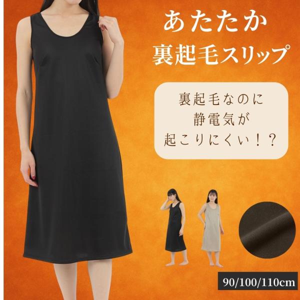 スリップ 裏起毛 ペチコート ワンピース 裏起毛 制電 ラン型 暖かい あたたかい 冬 冬用 防寒 静電気防止 透け防止 日本製 丈90cm、100cm、110cm M L