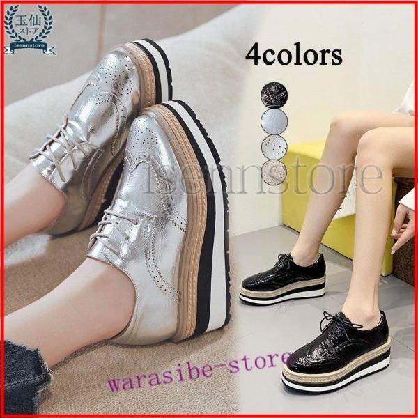 オックスフォードシューズ韓国厚底オルチャンストリート靴メタリックローファー原宿系きれいめおじ靴マニッシュ