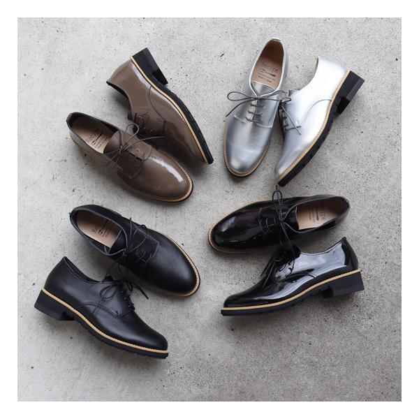 オックスフォードシューズ レディース 本革 エナメル 日本製 40代 50代 厚底 履きやすい レースアップシューズ Recipe レシピ RP-308K 2E相当
