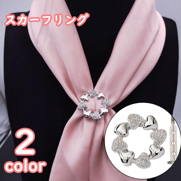 スカーフリング ブローチ レディース 女性用 アクセサリー クリップ ラインストーン ハート おしゃれ かわいい