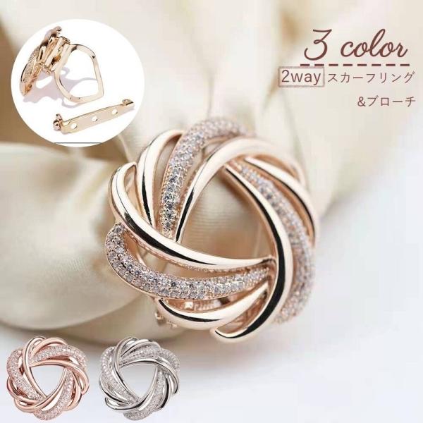 スカーフリング ブローチ 2way スカーフクリップ レディース 女性 アクセサリー スカーフ留め ラインストーン クロス ウェーブ サークル ファッ