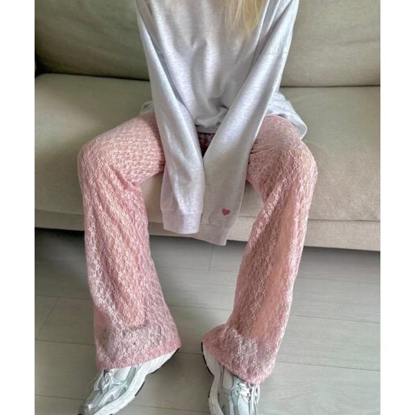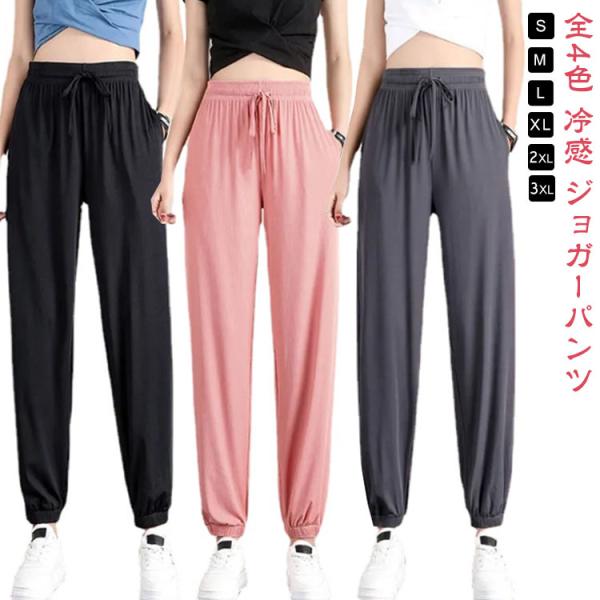 パンツ アルファベット刺繍付きウエストイージーパンツ レディース