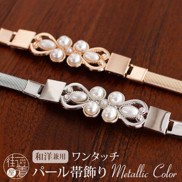 ワンタッチパール 帯飾り パール 細ベルト スプリング式 メタリック ワンポイント 高級感 帯締め バネ ループ ゴールド シルバー ベルト