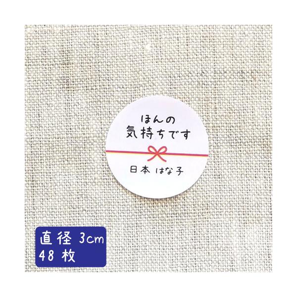 【名入れ】ハンドメイド ほんの気持ちです 丸い 30mm メッセージシール 水引き 48枚 ■m48a0005-04■