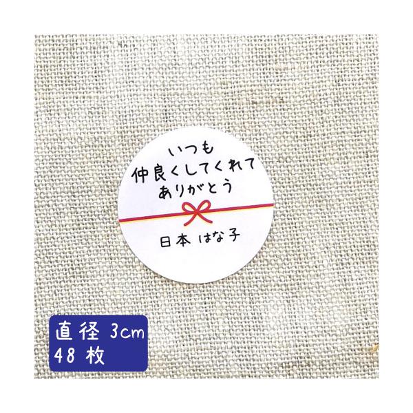 【名入れ】ハンドメイド いつも仲良くしてくれてありがとう 丸い 30mm メッセージシール 水引き 48枚 ■m48a0005-09■