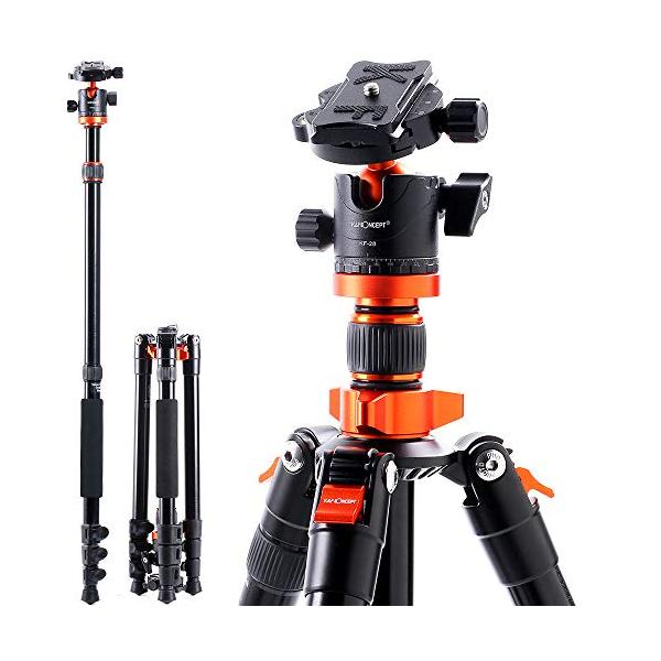 一眼レフ 三脚 K&F Concept カメラ三脚 軽量 アルミ合金製 コンパクト 一脚可変 自由雲台 デジタルカメラ 一眼レフ用 クイックシュ